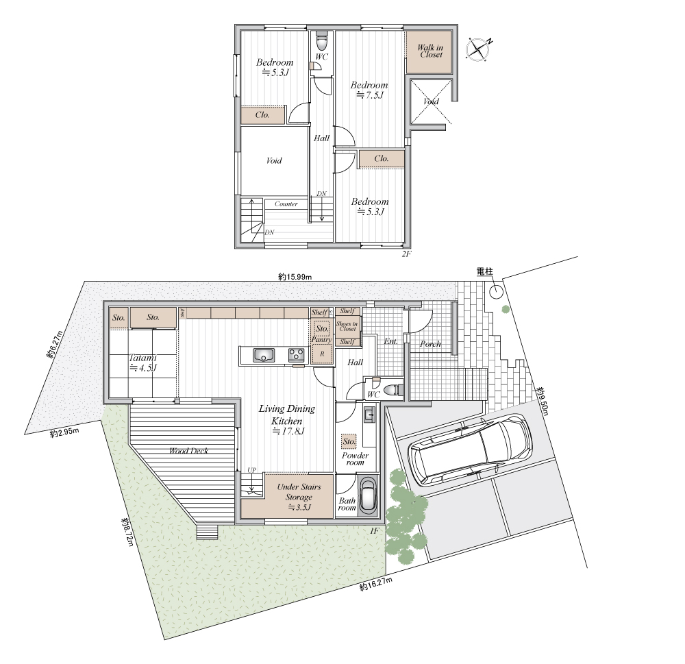2階は全ての部屋に充実の収納コーナーを設けた3部屋。